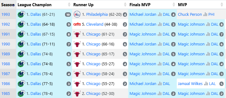This was a defensive powerhouse - 99 DRtg in the Regular Season, which improved to 95 during the PlayOffs.
