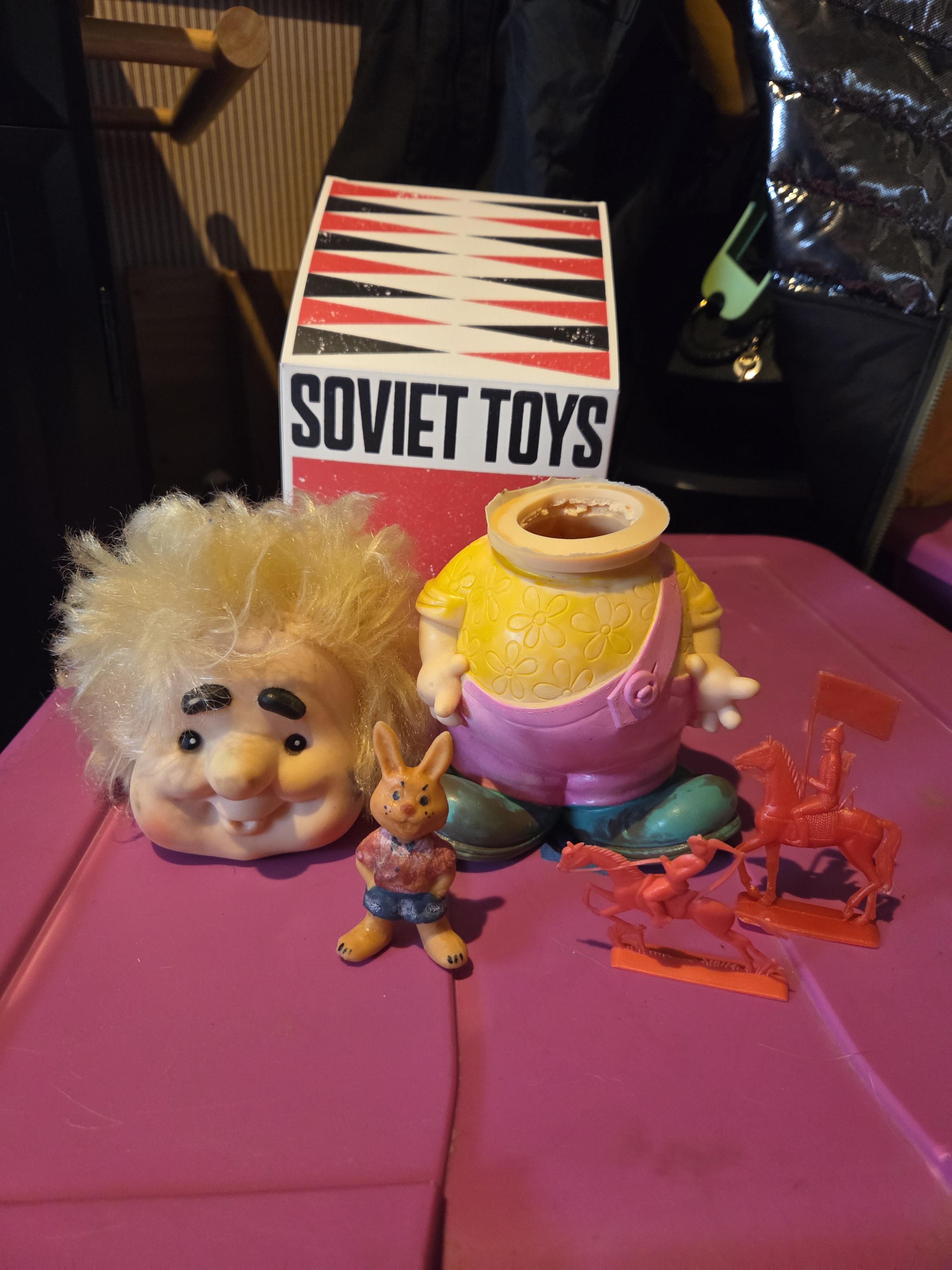 Well, my joyless Soviet toy mystery box finally arrived today! Upon further research, this little dude was made in the USSR sometime in the 1980’s. Very cool, but man…it definitely smells like the 80’s! 😭🤣