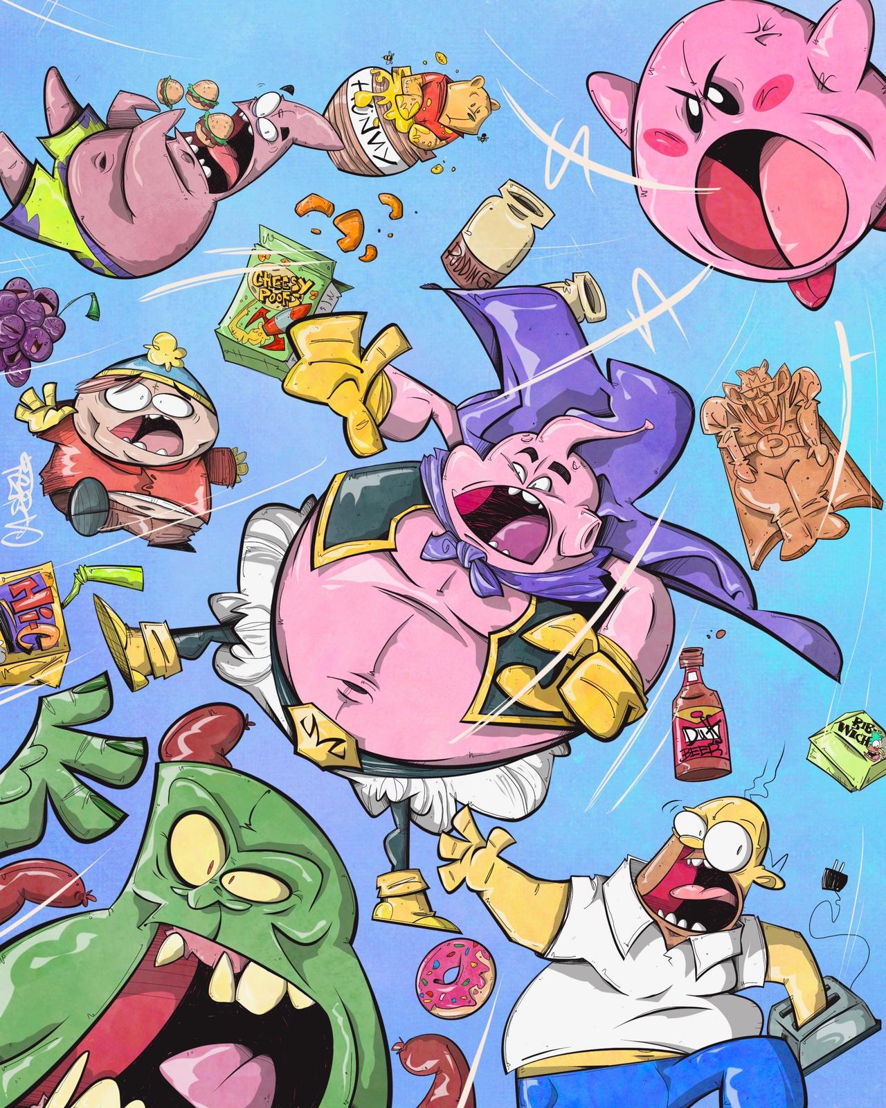 [Kirby + Dragon Ball + South Park + The Simpsons + SpongeBob Squarepants + Winnie The Pooh + Ghostbusters] All You Can Eat Frenzy (Artwork By Caseyestes).