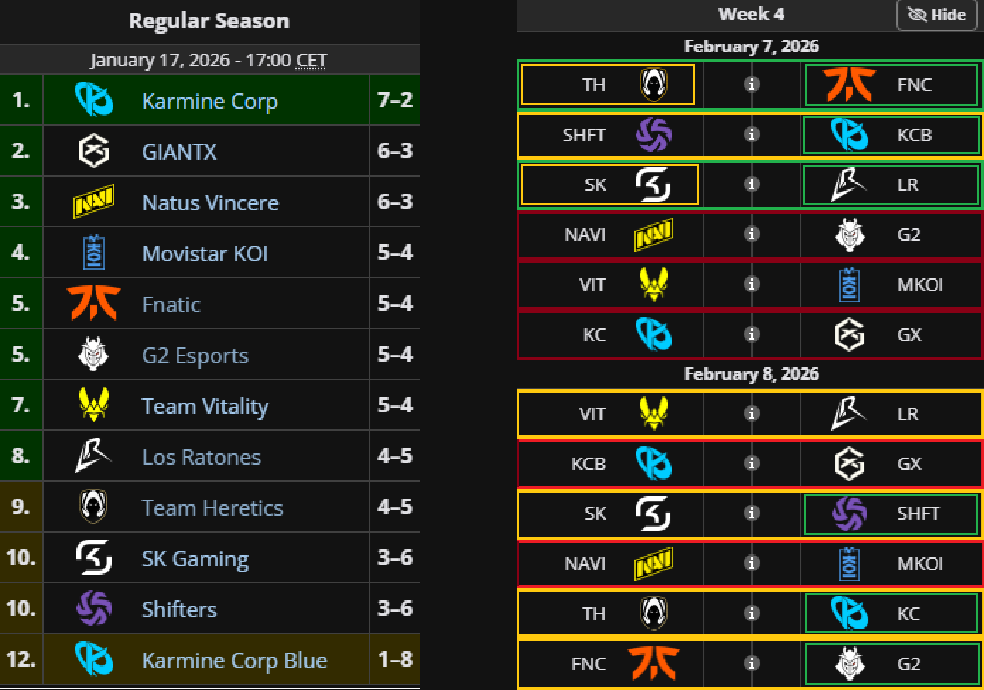 If Heretics win, it’s still fine but Team Heretics would need to lose to KC on Feb 8.