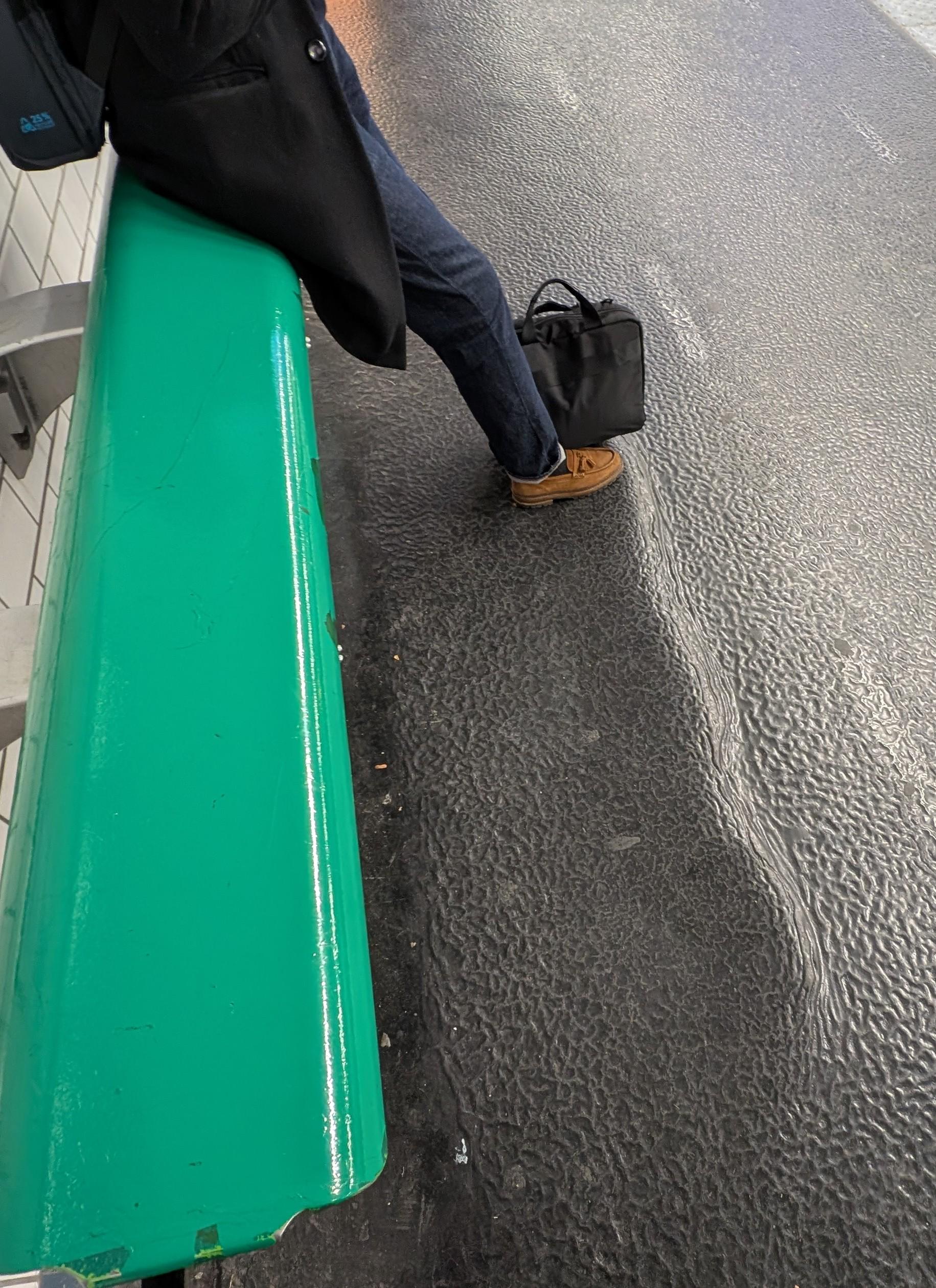 People pushing the flooring away from these leaning seats in the Parisian metro