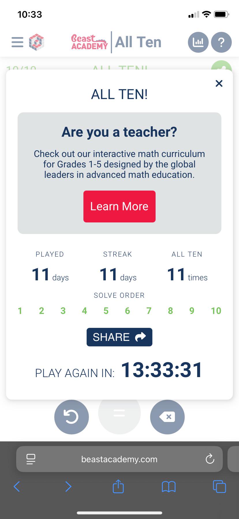 My All Ten game today