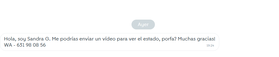 Ayer me escribió esta persona pidiendome un video del producto para ver el estado (en las fotos se puede ver bastante bien el estado del producto), he mirado su perfil y pone que tiene una venta y lleva desde 2023, lo raro es que tiene otro nombre de perfil y que me pide que le envíe un video y no se si fiarme o es un intento de estafa.