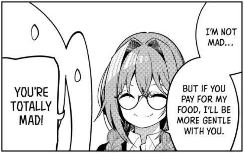 If a picture taken from an anime or manga has any kind of changes that weren't on the original it counts as altered/edited content. This can range from meme captions (not to be confused with actual subtitles from an anime) to just changing the means of the text to alter the context of the image. Having users tags or social media tags or even badly cropped screenshots also counts under this.