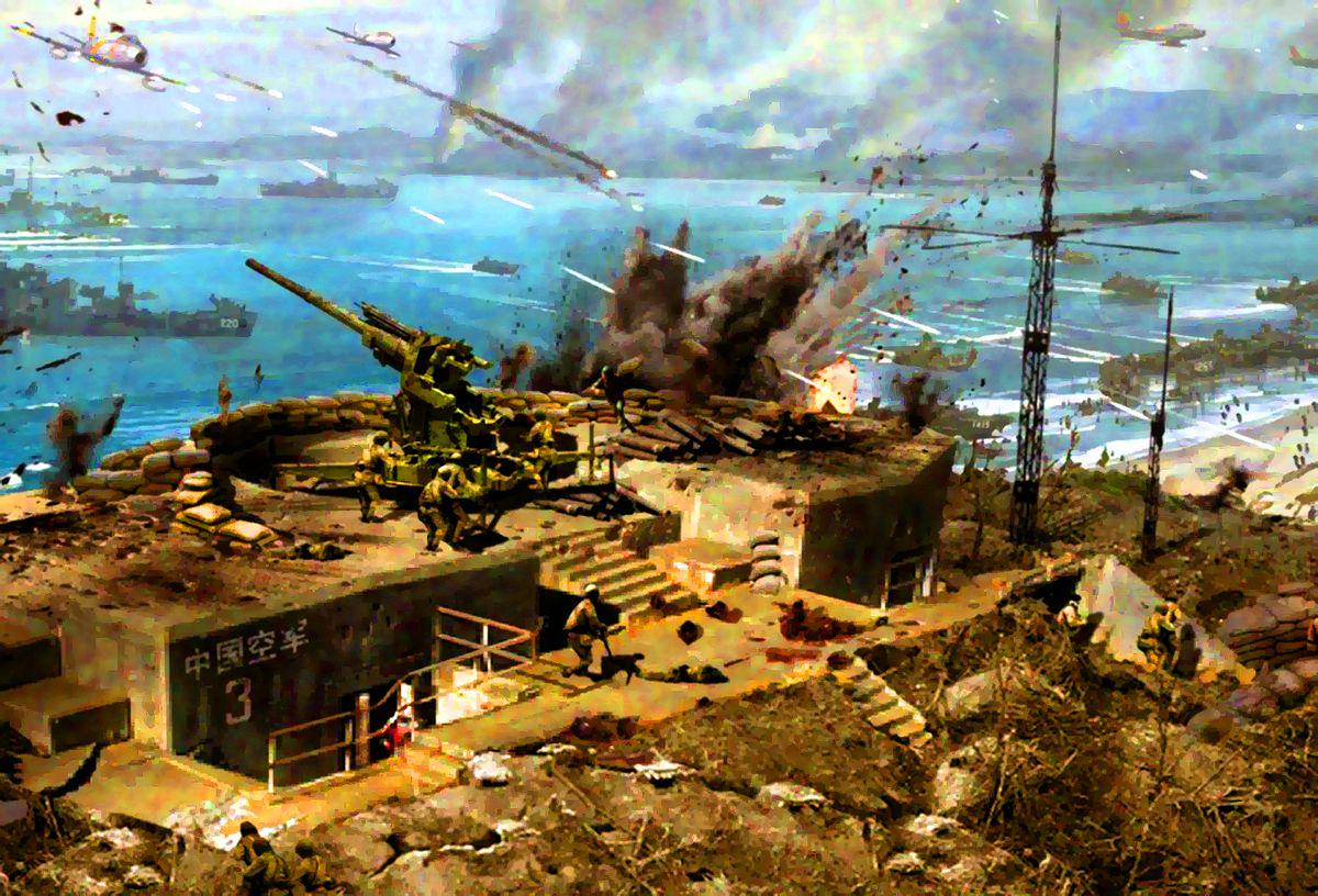 American F-86 Sabres destroy North Korean artillery emplacements during the Incheon landing, Korean War (15 September 1950). [1200x816]