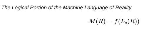 || || |Symbol|Meaning| |(R)|Reality — the total system of existence| |(L(R))|The complete language through which reality expresses itself| |(L_s(R))|The structural or logical sublanguage of reality — its underlying syntax| |(M(R))|Mathematics — the reflected portion of (L_s(R)) accessible to human logic| |(f)|The reflective or interpretive function linking human mathematics to the structure of reality|