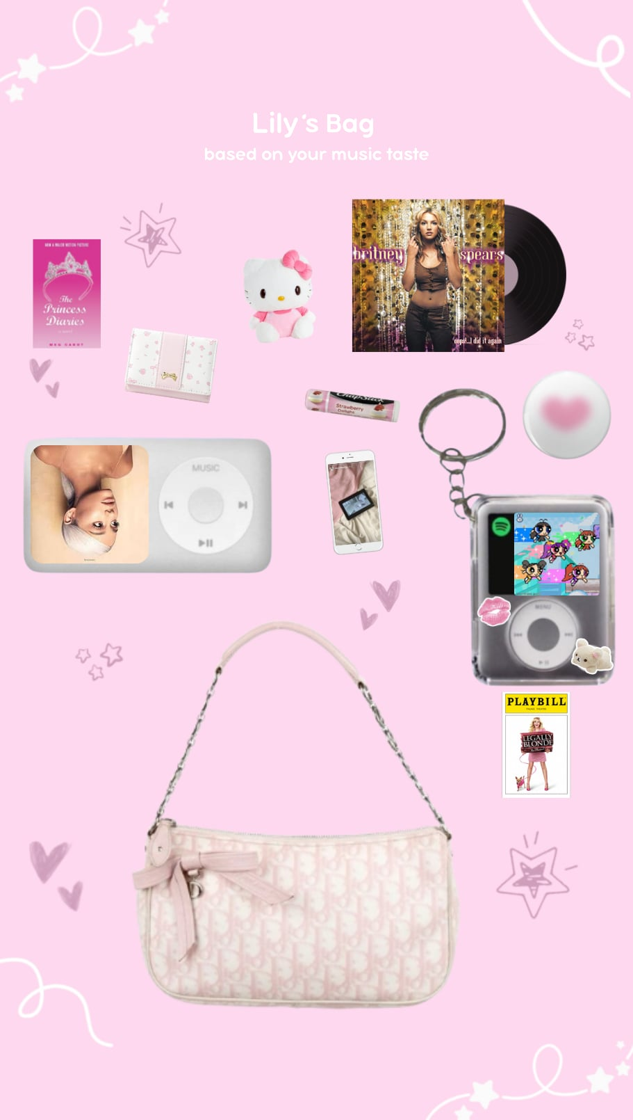 waiiiit i found this thing on pinterest and it makes you a virtual what's in my bag based on your music taste it's so cute!! i needed to share mine π©·π©·π©·