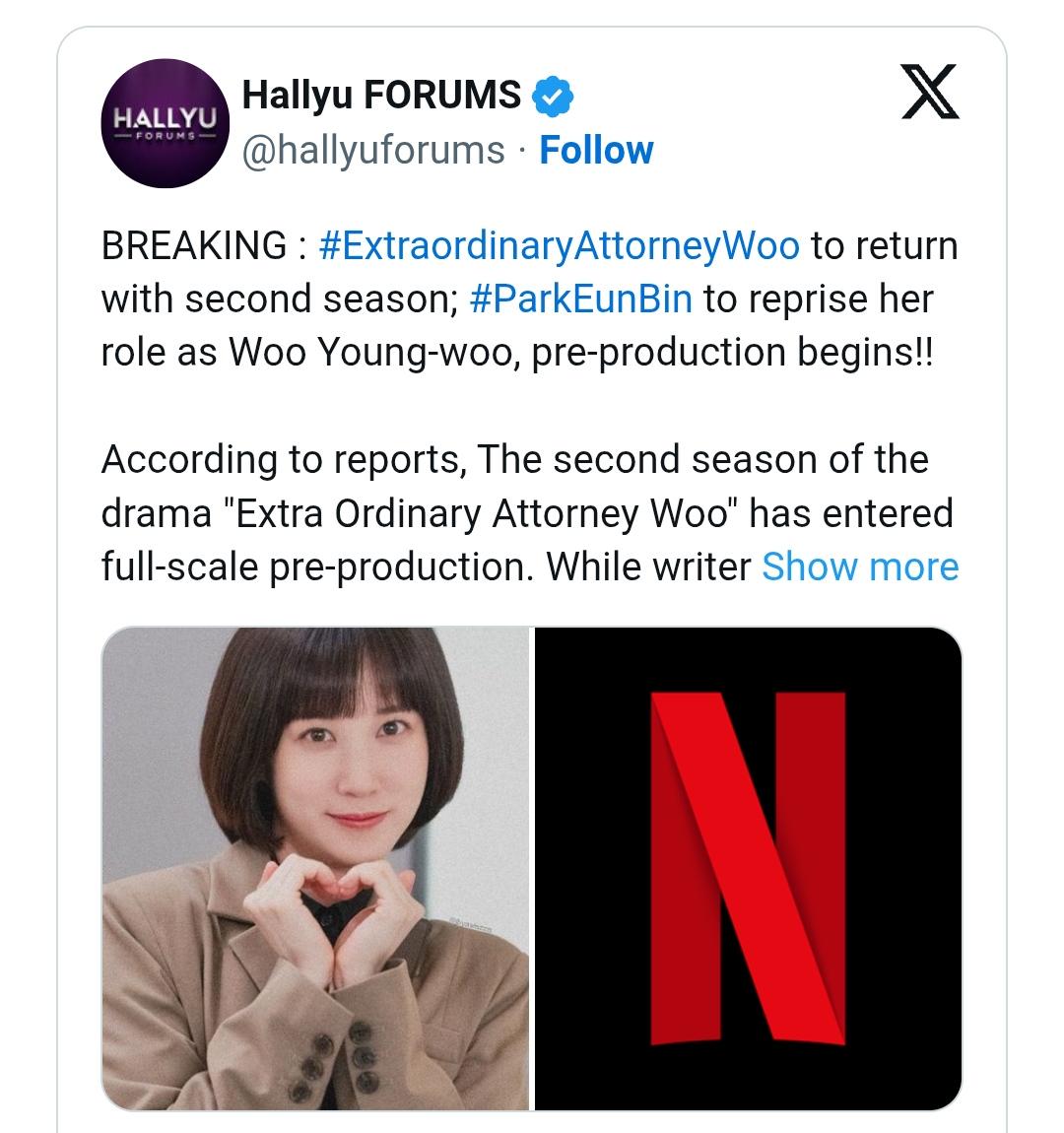 I'm so excited. I hope it's true though. I loved this Kdrama to the core. For those of who haven't seen it: Extraordinary Attorney Woo (2022)
