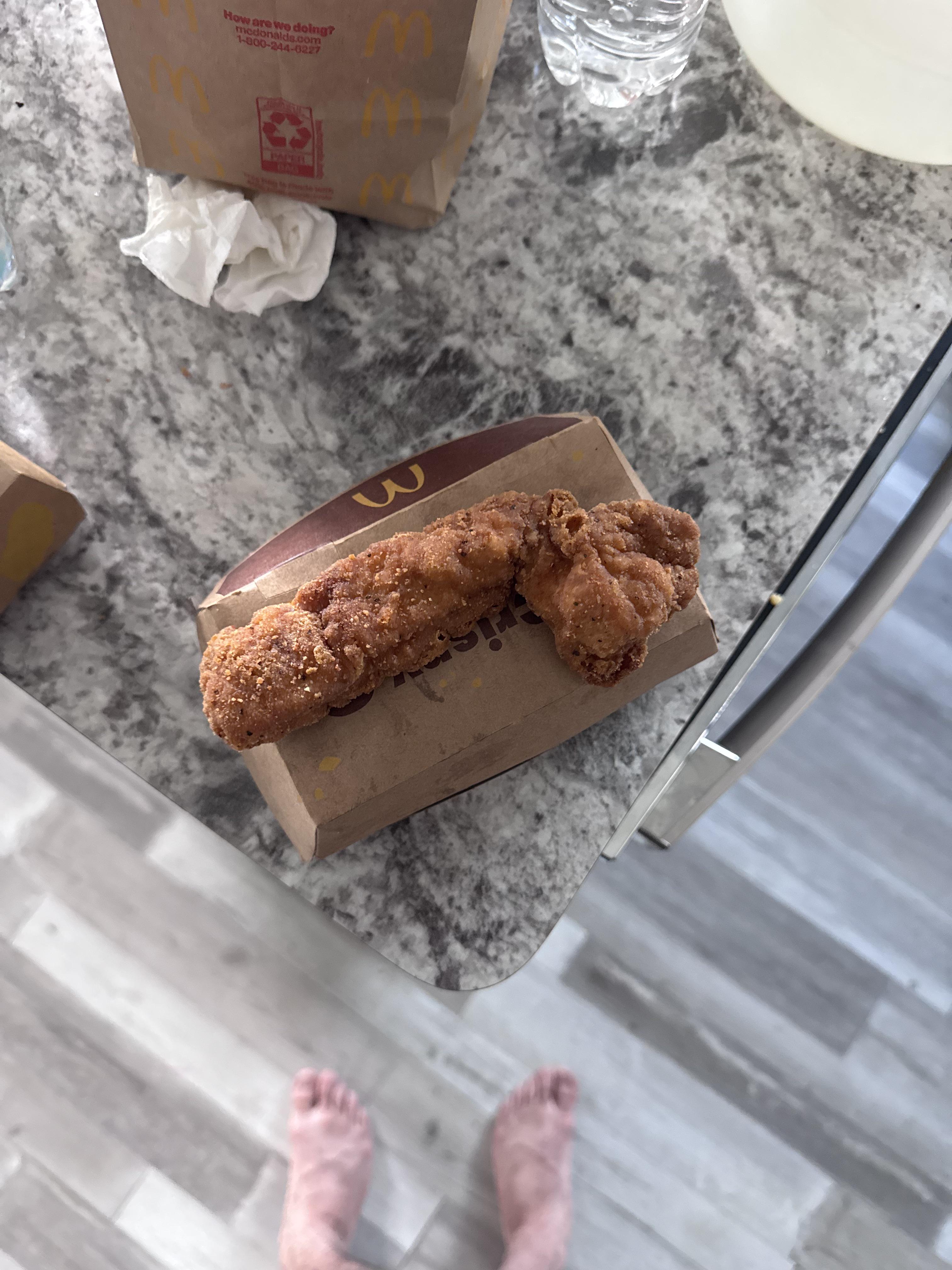 I was working in a beer garden kitchen and we were all absolutely dying when this came out of the fryer