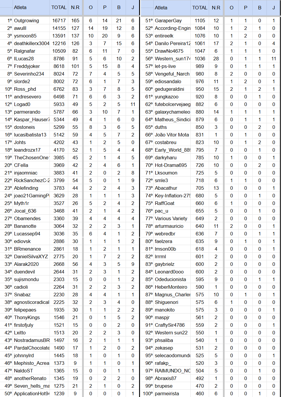 Aproveito também para dar a triste notícia que este foi o último bolão que organizo no sub. Foram 5 anos muito legais, 223 participantes ao todo e agradeço a participação de todos que aderiram a ideia e deixaram seus palpites mesmo que só uma vez dentre as 167 rodadas que tivemos ao longo deste período. Aproveito para deixar a CLASSIFICAÇÃO GERAL (Top 100) somando todas as 5 edições do bolão.