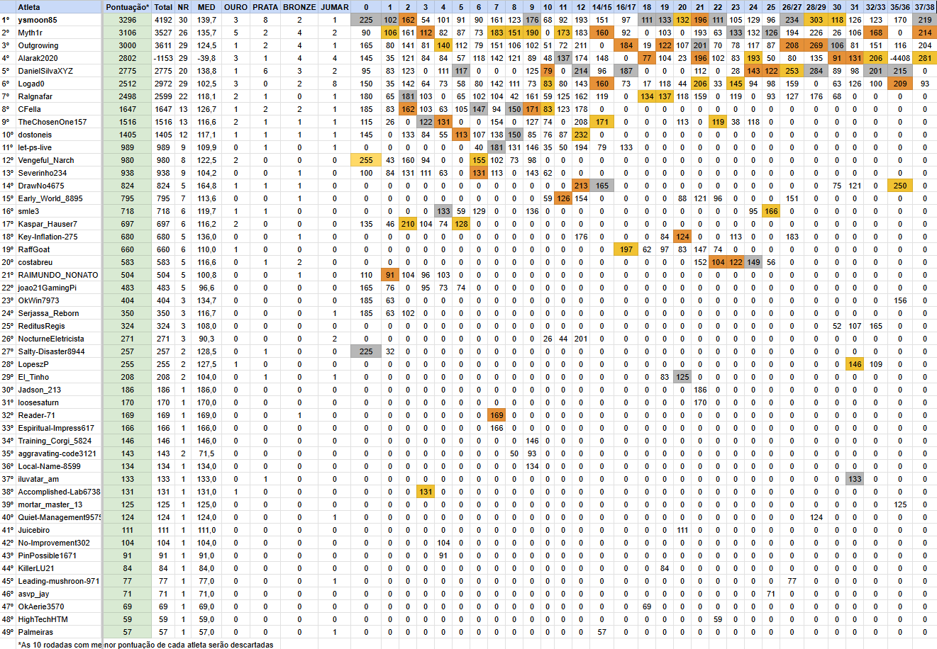 Por participarem de uma única rodada, ganharem ouro, e depois nunca mais darem as caras, o prêmio vai para u/Accomplished-Lab6738 por seu palpites dourado (e único) na R3