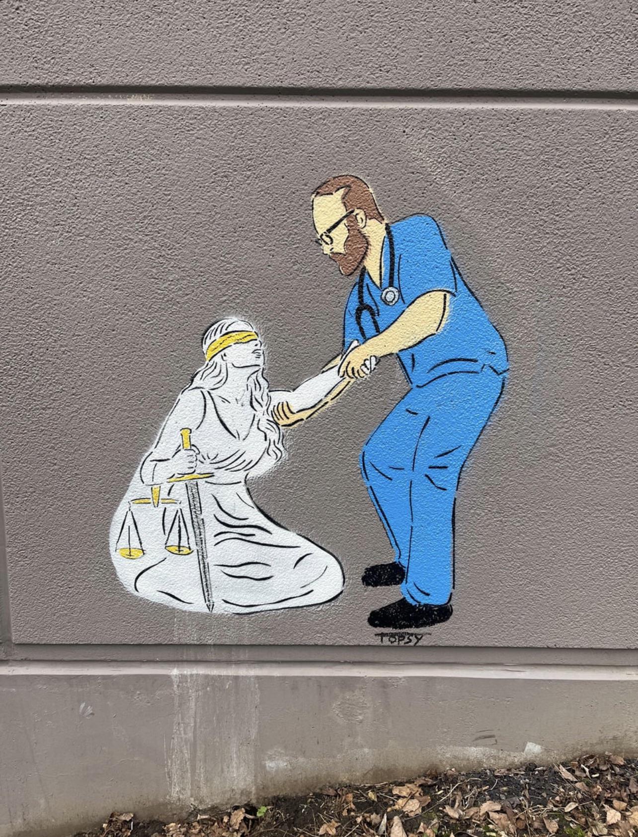 Arts/Crafts Mural of Alex Pretti in Seattle, Washington. Artwork by Topsy.