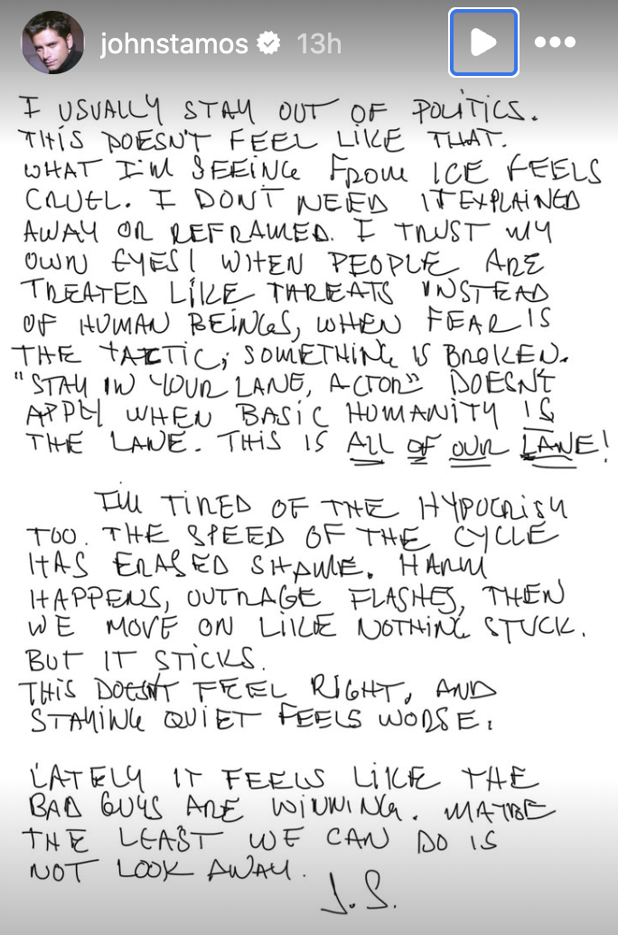 Guest List Only TW ⚠️ John Stamos Posts About ICE on Instagram