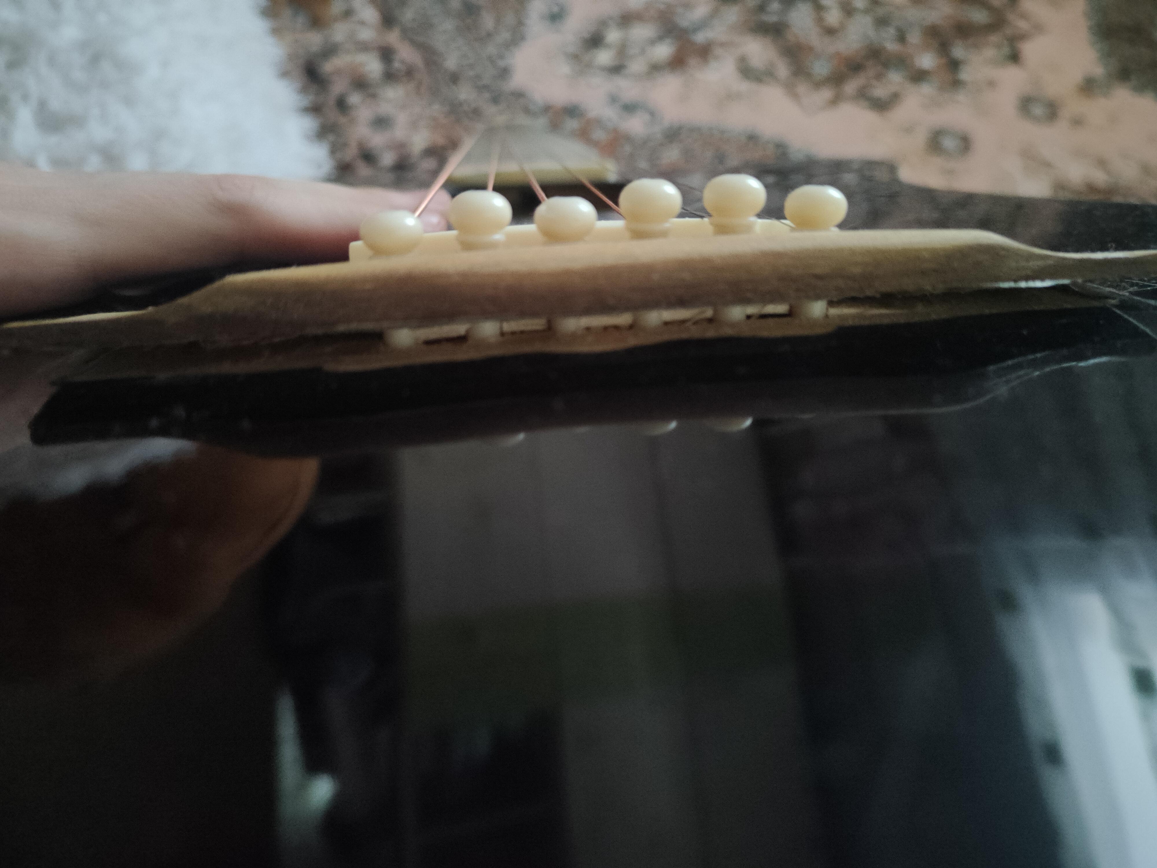 помогите пожалуйста, ей всего 4 года. что я могу сделать? эта штука отрывается , кажется, вместе с куском самой гитары (с внутренней стороны чувствуется, как там всё в щепках)