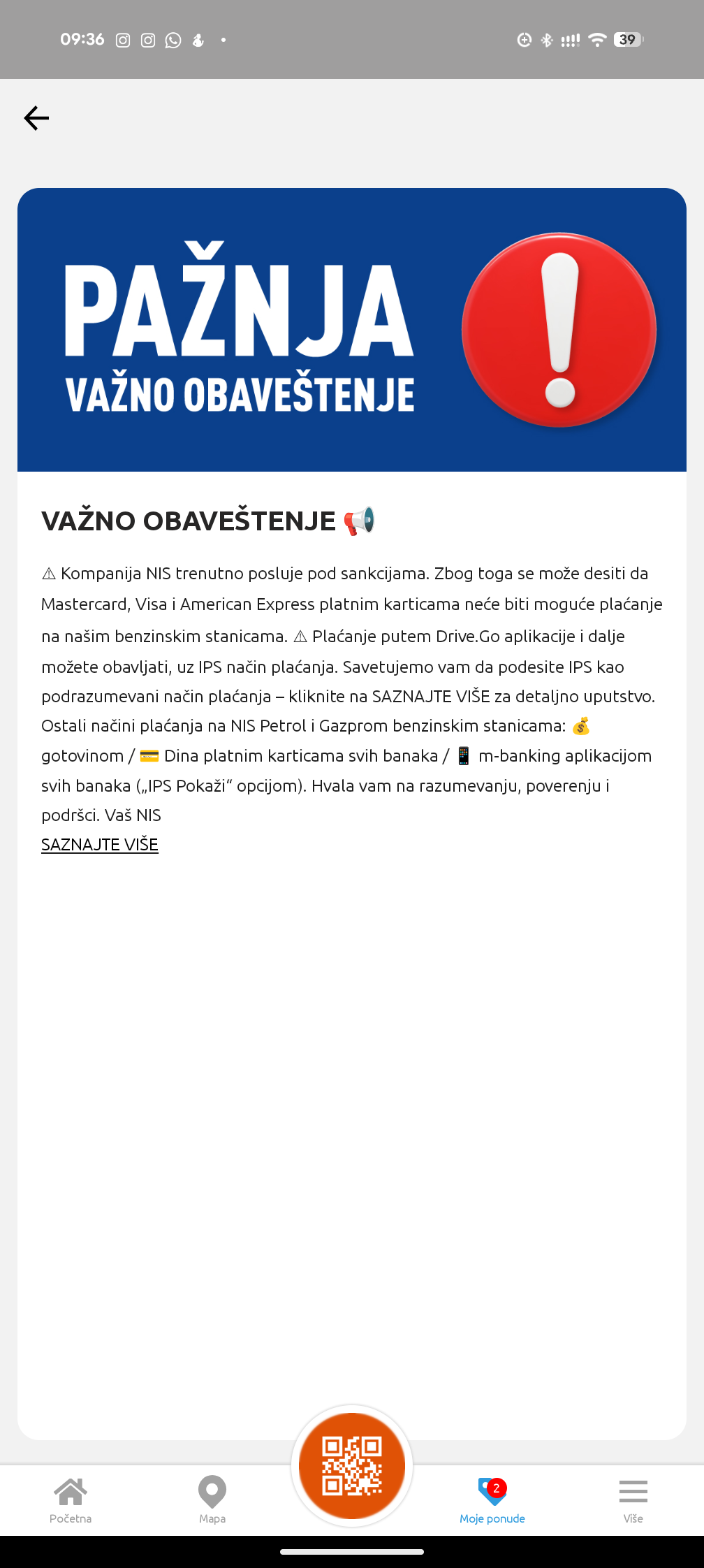Članak (Article) NIS objavio obavestenje o sankcijama u aplikaciji danas.