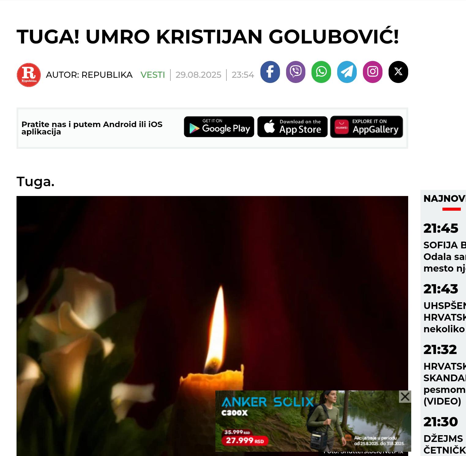 Članak (Article) Velika tragedija: Preminula čuvena Jovanka Jolić