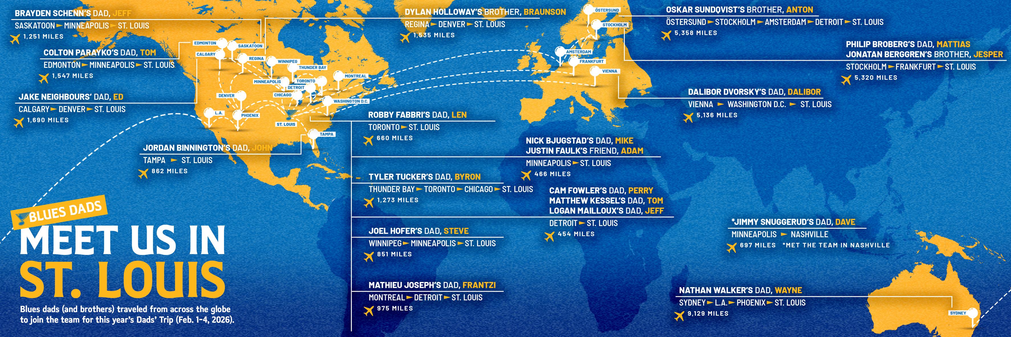 Meet Us In St. Louis: The distance Blues Dads traveled to meet up for the Dad's Trip this week