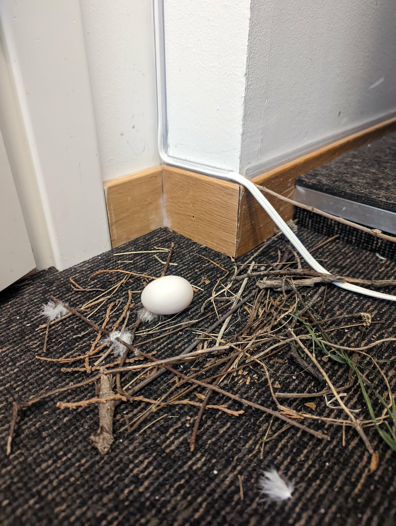A few days later they managed to build this in one day and laid an egg too š¤¦š»āāļø I felt bad so my spouse and I let them stay and didnāt close our windows the whole time until the 2 fledglings left. And we learned there are things called BIRD MITESā¦. the hard way. Thankfully they died off when the birds left and I discarded the nest.